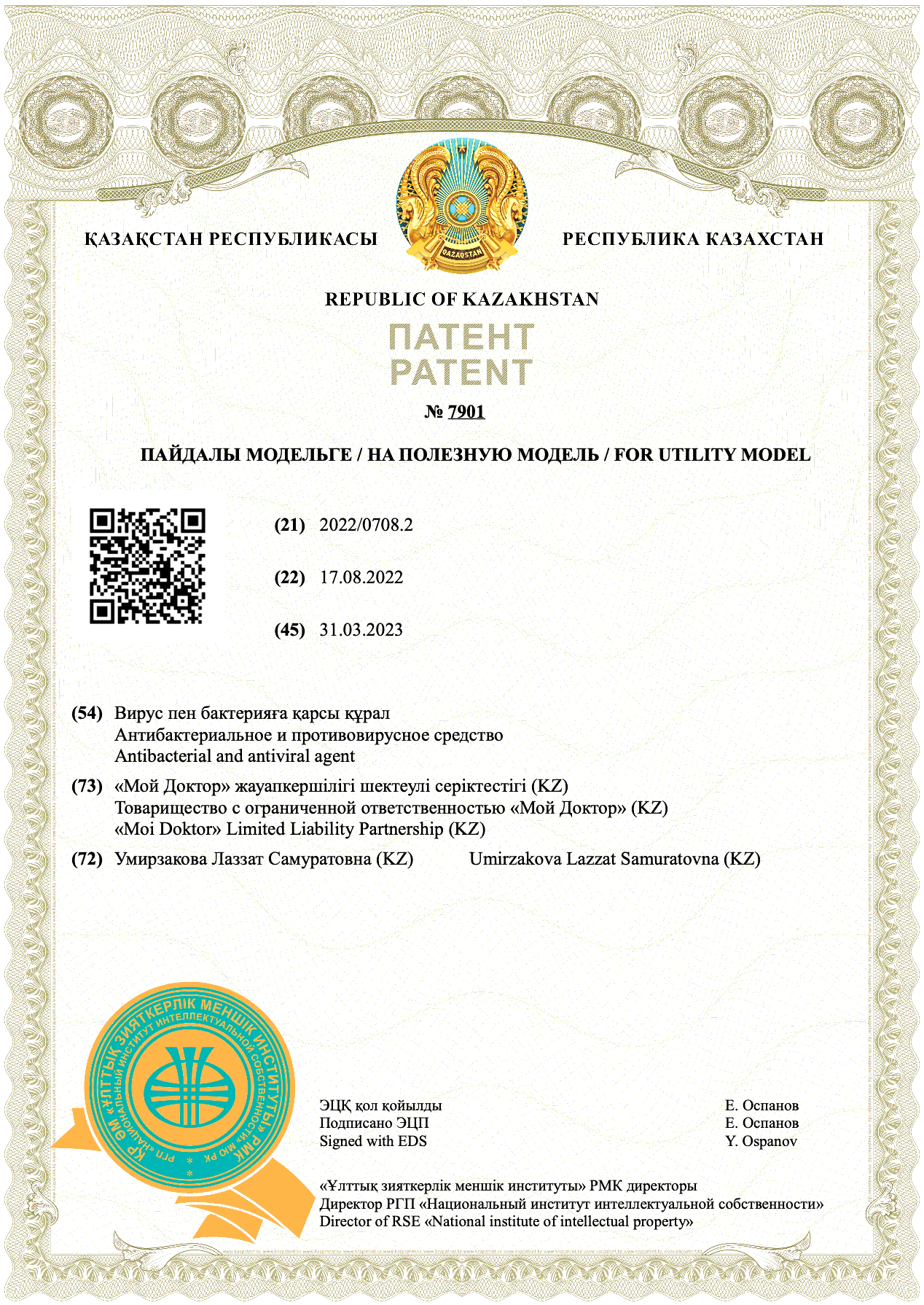 Свидетельство о государственной регистрации: KZ.16.01.98.003.R.000157.03.22